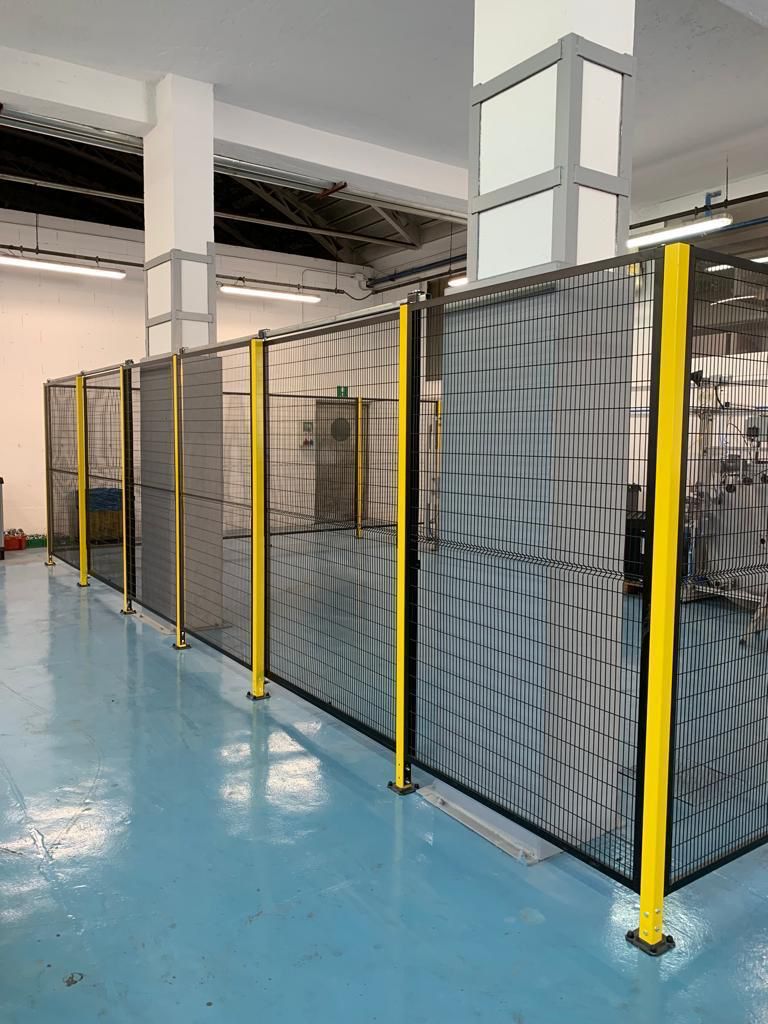 Protezione antinfortunistica per protezione di macchinari all’ interno di aziende. Pannello con intelaiatura da 20×20 con spessore da 1,5 e con all’ interno un pannello elettrosaldato che garantisce solidità e sicurezza.